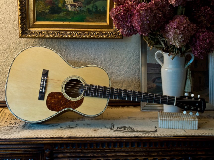 Johann Brentrup is another great guitar (and mandolin) maker from Minneapolis, and an old friend. His guitars draw inspiration from the classic Larson Brothers, Holzapfel, and Stella instruments of the 1920s and ’30s. My newest guitar, shown here, is a Grand Concert made of Adirondack spruce with white oak back and sides. It’s a cannon! I have the honor of recording some sound samples and videos for Hans; you can see them here.
